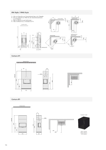 B = Höhe vom Boden bis zur Mitte des des Schornsteinanschlusses 400 Feuerfeste Wand aus