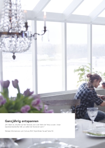 Ganzjährig entspannen „Wir lieben es, draußen auf der Veranda und in der Nähe der Natur zu sein. Unser Specksteinkaminofen hält uns selbst bei Nordwind warm.” Weitere Informationen zum Contura 556T Style finden Sie auf Seite 50. 18