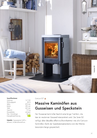 Max. Scheitlänge 35 cm Der Gusseisenkaminofen besitzt eine lange Tradition, die