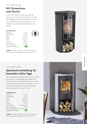 Die Verkleidung aus Speckstein verleiht Contura 520T