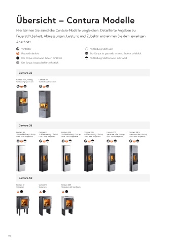 Hier können Sie sämtliche Contura-Modelle vergleichen. Detaillierte Angaben zu